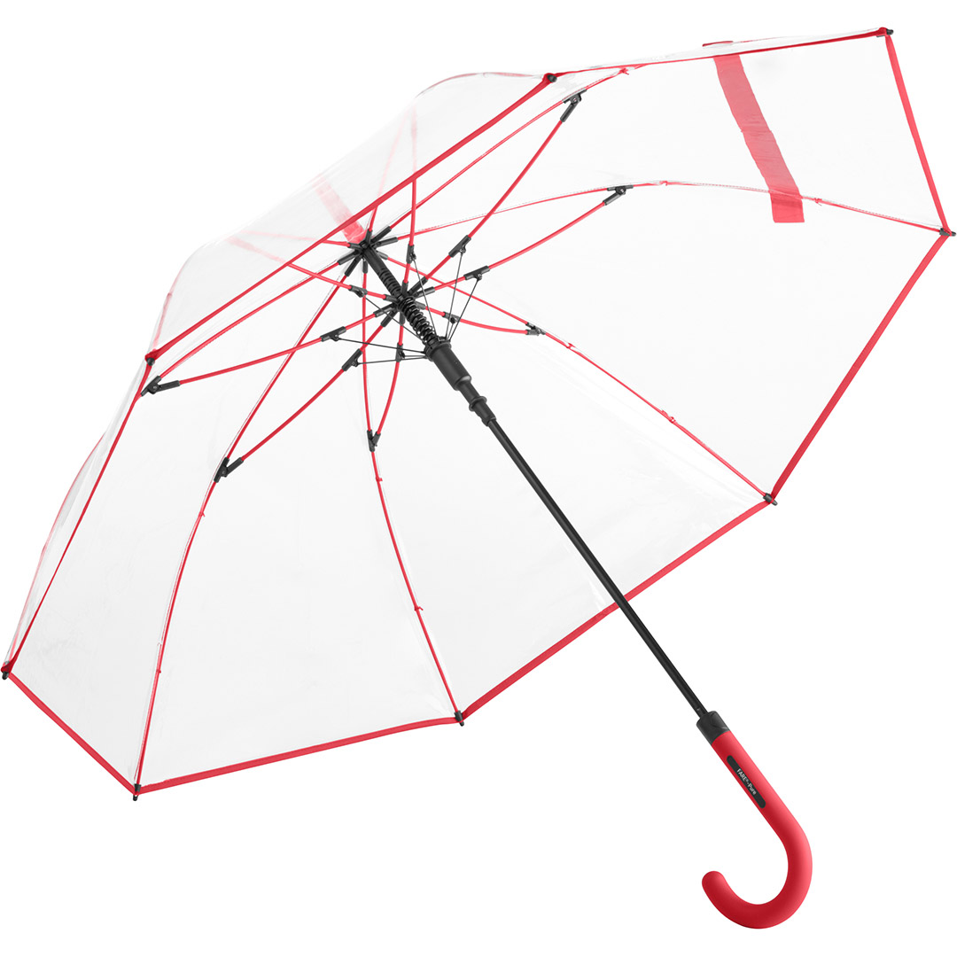 Ansprechender Automatik-Stockschirm mit transparentem Bezug und farbigen Details