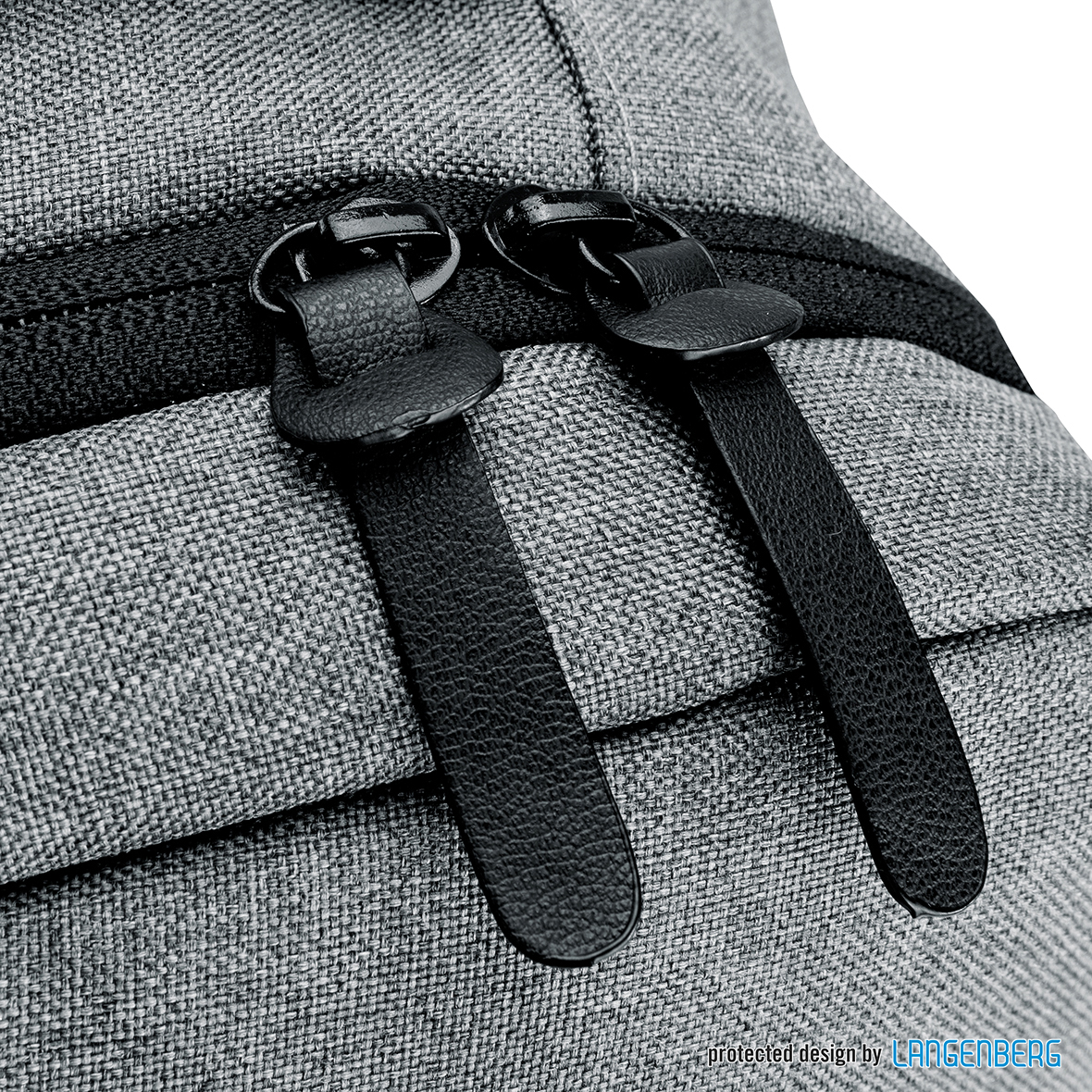 Dieser Rucksack besteht aus robustem 600D Due-Tone Polyester und 210D Innenfutter und bietet ein Volumen von ca. 23 Litern. Er verfügt über ein 2-Wege-Reißverschlusshauptfach, das ein Laptopfach und ein Einsteckfach für Geräte bis zu 14" beinhaltet. Weite
