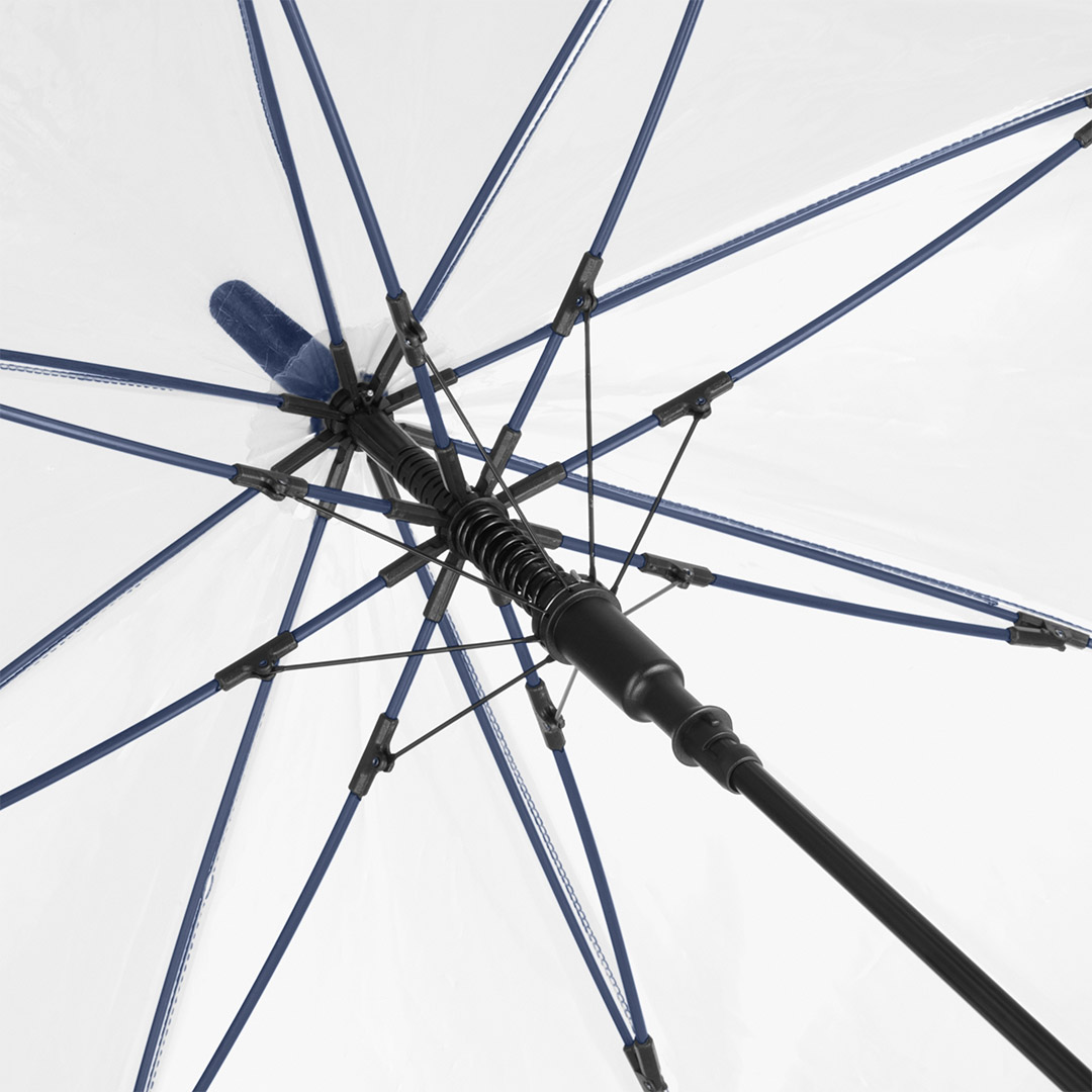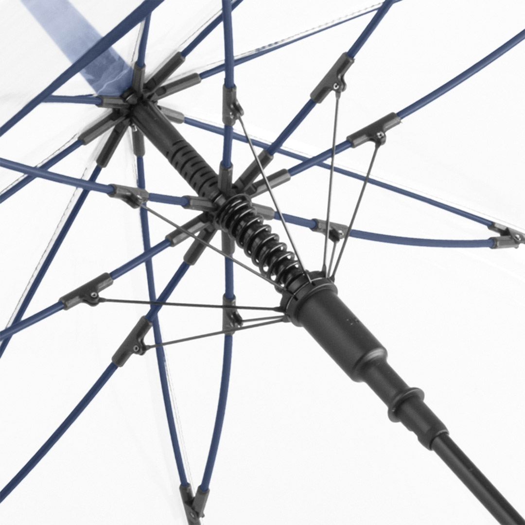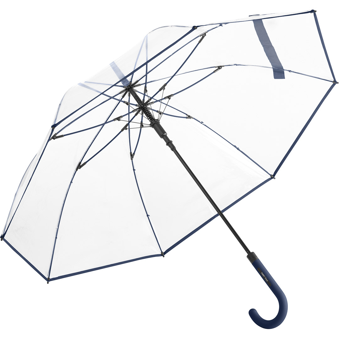 Ansprechender Automatik-Stockschirm mit transparentem Bezug und farbigen Details