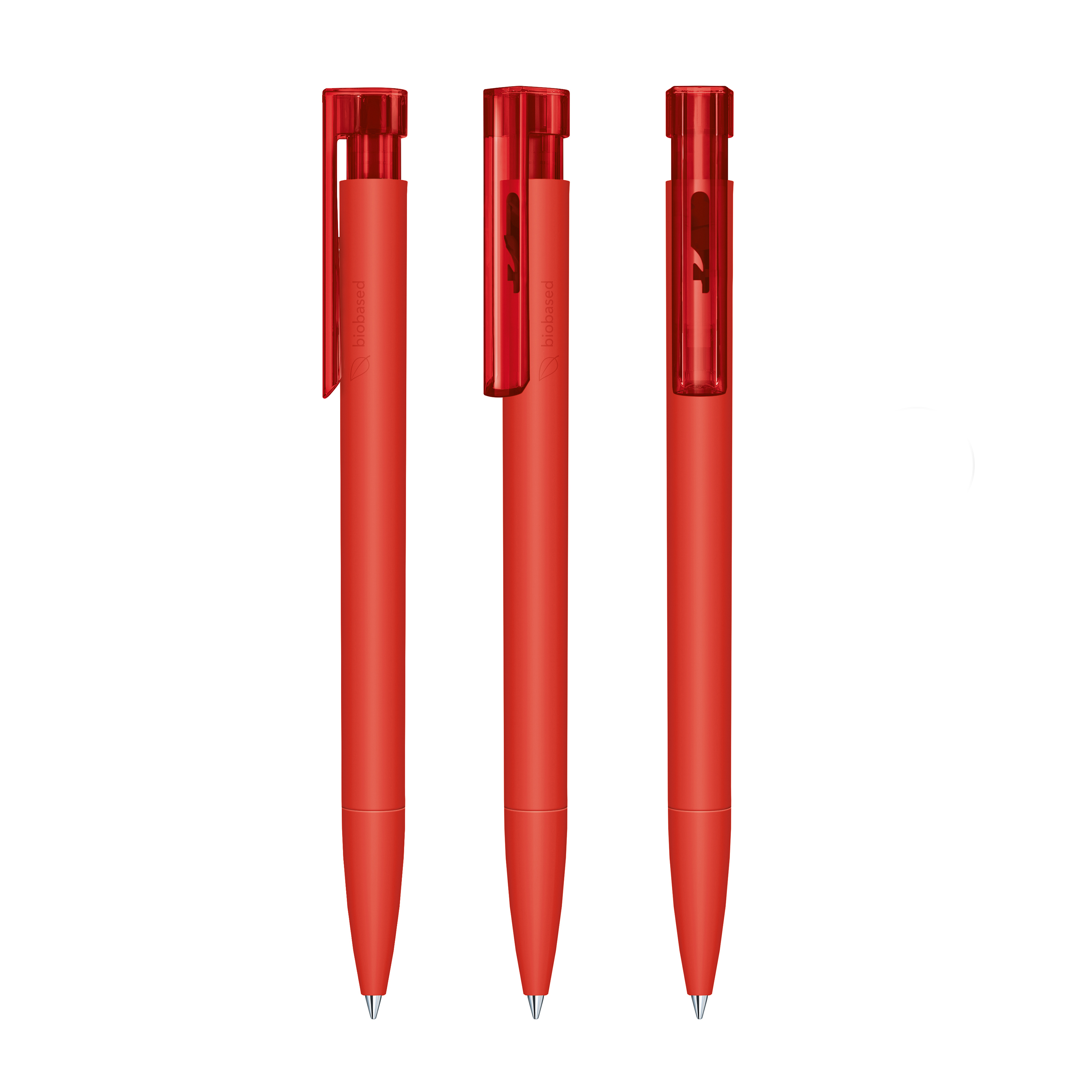 Druckkugelschreiber „senator® Liberty Bio“ – klar, modern und biobasiert. Der „Liberty Bio“ verfügt über eine matte Oberfläche und wird aus biobasiertem Kunststoff (PLA auf Zuckerrohrbasis) gefertigt. Seitlich ist er mit der Kennzeichnung „biobased“ versehen, die seinen nachhaltigen Anspruch sichtbar macht. Ein transparenter Clip ergänzt das klare, moderne Design und setzt einen leichten Akzent. Mit der senator® magic flow G2 Mine (1,0 mm) erreicht er eine Schreiblänge von bis zu 5.000 Metern – zuverlässig und präzise. Der Kugelschreiber ist Made in Germany und steht für höchste Qualität, Langlebigkeit und Zuverlässigkeit. Die Option einer kostenlosen Ersatzmine verlängert die Lebensdauer und sorgt für mehr Nachhaltigkeit und anhaltende Werbewirkung.